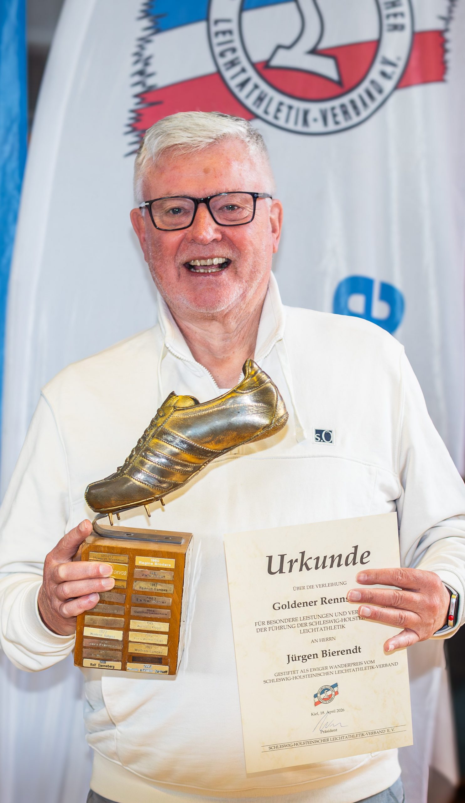 Auf dem SHLV-Verbandstag am 18.04.in Kiel wurde das Präsidium wiedergewählt. Neu gewonnen werden konnte Larissa Hutfilz als Referentin Öffentlichkeitsarbeit. Emotionaler Höhepunkt war die Verleihung des „Goldenen Rennschuh“ an Jürgen Bierendt für sein fast 50-jähriges Engagement in der Leichtathletik.