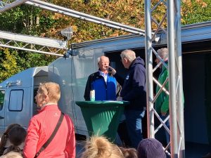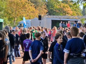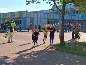 Das Rahmenprogramm des Lauftages wurde von R.SH-Chef-Korrespondent Carsten Kock professionell moderiert. Coole Musik und seine motivierenden Ansagen unterstützten nach dem Startschuss die lauffreudigen Schülerinnen und Schüler auf ihren Runden über das Schulgelände.