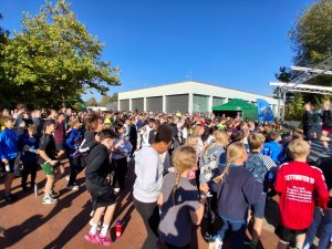 Beim landesweiten Laufabzeichen-Wettbewerb ‚AOK-Laufwunder‘ konnten die Schülerinnen und Schüler der beiden Schulen in Eckernförde ihre Ausdauer unter Beweis stellen, indem sie 15, 30 oder 60 Minuten ohne Unterbrechung liefen. Nicht die Schnelligkeit, sondern das gemeinsame Laufen stand dabei im Vordergrund. Michael Rehbehn, stv. Schulleiter der Peter-Ustinov-Schule Eckernförde-Schule sagte: „Wir freuen uns, in diesem Jahr die Auftaktveranstaltung auszurichten. Laufen stärkt die Ausdauer, fördert Fairness und Gemeinschaft und macht erlebbar, wie wertvoll gemeinsame Bewegung und Durchhaltevermögen sind. Das ‚Laufwunder‘ ist mehr als nur ein Sportereignis – es hat einen hohen Wert für die Persönlichkeits- und Wertebildung unserer Schülerinnen und Schüler.“ Mit Beginn des neuen Schuljahres nach den Sommerferien ist die Vorbereitung für den Laufabzeichen-Wettbewerb Teil des Sportunterrichts der Peter-Ustinov-Schule. Und Sebastian Klingenberg, Schulleiter der Jungmannschule Eckernförde, ergänzte: „Die gemeinsame Teilnahme am Laufabzeichen-Wettbewerb fördert den Zusammenhalt und die soziale Kompetenz an der Schule. Wir stellen häufig fest: wer sich regelmäßig bewegt, profitiert davon auch im Unterricht, da Sport ein guter Ausgleich zu intensiven Lernphasen ist.“