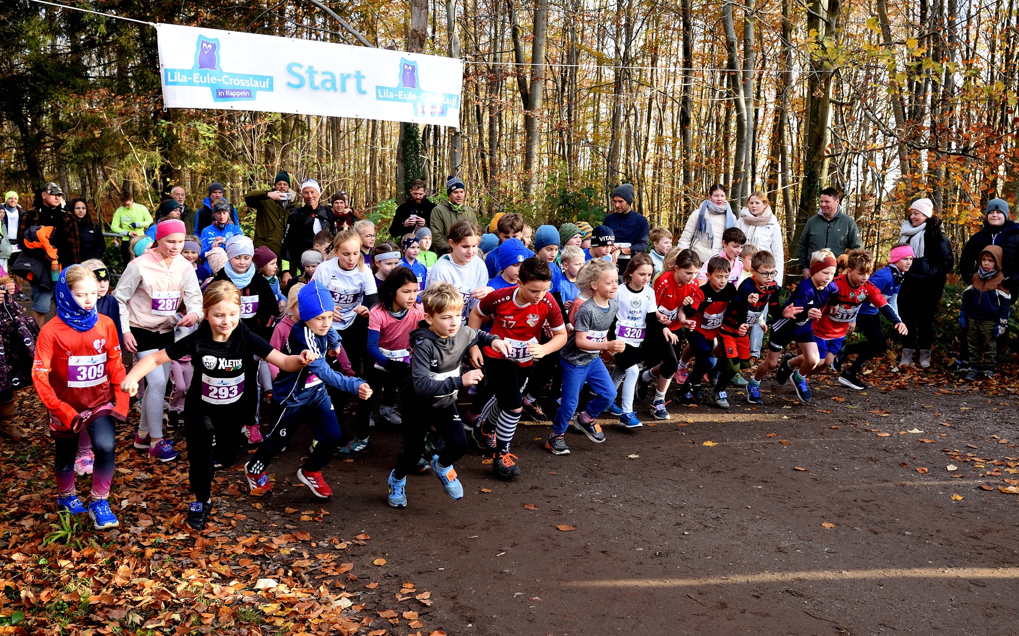 Bei bestem Herbstwetter erreichten beim 37. Lila-Eule-Cross in Kappeln insgesamt 308 Läufer das Ziel und sorgten damit für eine neue Rekordbeteiligung beim traditionsreichen Crosslauf an der Schlei. Bei trockenem Wetter war die Strecke deutlich weniger matschig als in den Vorjahren. Die während des Laufs immer breiter werdende Au, die nur wenige Aktive mit trockenen Füßen überqueren konnten, und der knackige Zielanstieg sorgten aber dennoch für Crosslauf-Atmosphäre. Auf der Langstrecke wiederholten Rhea Richter (SG Athletico Büdelsdorf) und Dieter Schwarzkopf (Borener SV) ihre Vorjahreserfolge und dürfen den Siegerwanderpreis in Gestalt einer Holzeule ein weiteres Jahr bei sich zu Hause aufstellen. Rhea Richter gewann vor Nele Brügge (Tri-Sport Lübeck) und Franziska Anderssen (STV Sörup). Bei den Männern komplettierten Jakob Berger (Ellingstedt) und Steffen Richter (SG Athletico Büdelsdorf) die Podiumsplätze. Auf der Mittelstrecke dominierten wie im Vorjahr Läufer*innen vom LAC Kronshagen. Maxi Zembold gewann unangefochten vor den beiden Borenerinnen Tatjana Brandt und Marit Lorenzen. Victor von Papen setzte sich im LAC-Brüderduell hauchdünn vor Carl von Papen durch. Dritter wurde Julian Schürmann vom TSB Flensburg. Bei den Läufen der Kinder- und Jugendklassen wurde ebenfalls mit viel Elan um die Siege gekämpft. Für viele schnelle Läufer war der Lila-Eule-Cross die Generalprobe für die am 23. November in Kaltenkirchen anstehenden Crosslauf-Landesmeisterschaften und auch schon ein Vorgeschmack auf die Cross-LM im Jahr 2026, die dann im Rahmen des 38. Lila-Eule-Crosslaufs stattfinden wird. Alle Ergebnisse sind online unter www.stgk.de zu finden.