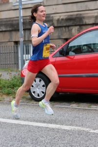 Spät in der Saison kommt Juli Kümpers noch einmal richtig in Fahrt. Nachdem sie vor einer Woche ihre 10 km Bestzeit auf 33:19 verbesserte hat, konnte sie nun auch die Halbmarathon-Bestzeit deutlich steigern. Auf dem flachen Kurs in Essen pulverisierte Julia ihre vorherige Bestzeit (1:14:44) und lief in 1:13:26 einen neuen Landesrekord. Nach 32 Jahren brach die 33-jährige Ärztin den Rekord von Kerstin Herzberg, die 1993 in Brüssel 1:13:42 lief. Herzlichen Glückwunsch!